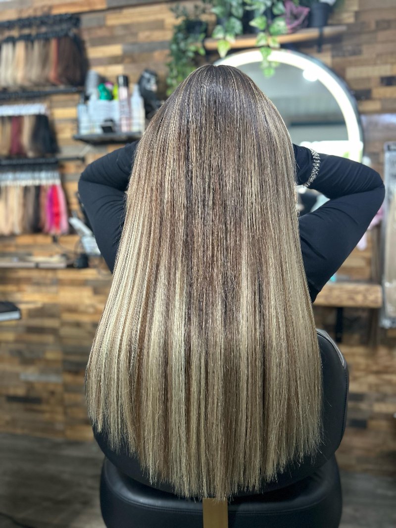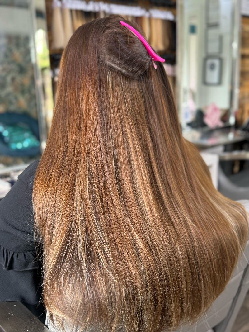 10 years experience in the industry. Fully accredited in all hair extensions methods including micro rings, nano tips, tape ins, secret weft and LA Weave