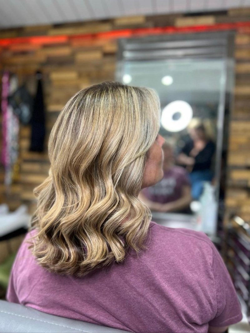 She is a fully qualified level 2 and 3 hairdresser. She is a highlight specialist, has trained in free hand balayage and fully qualified in nano, micro ring, tape and LA Weave hair extensions.